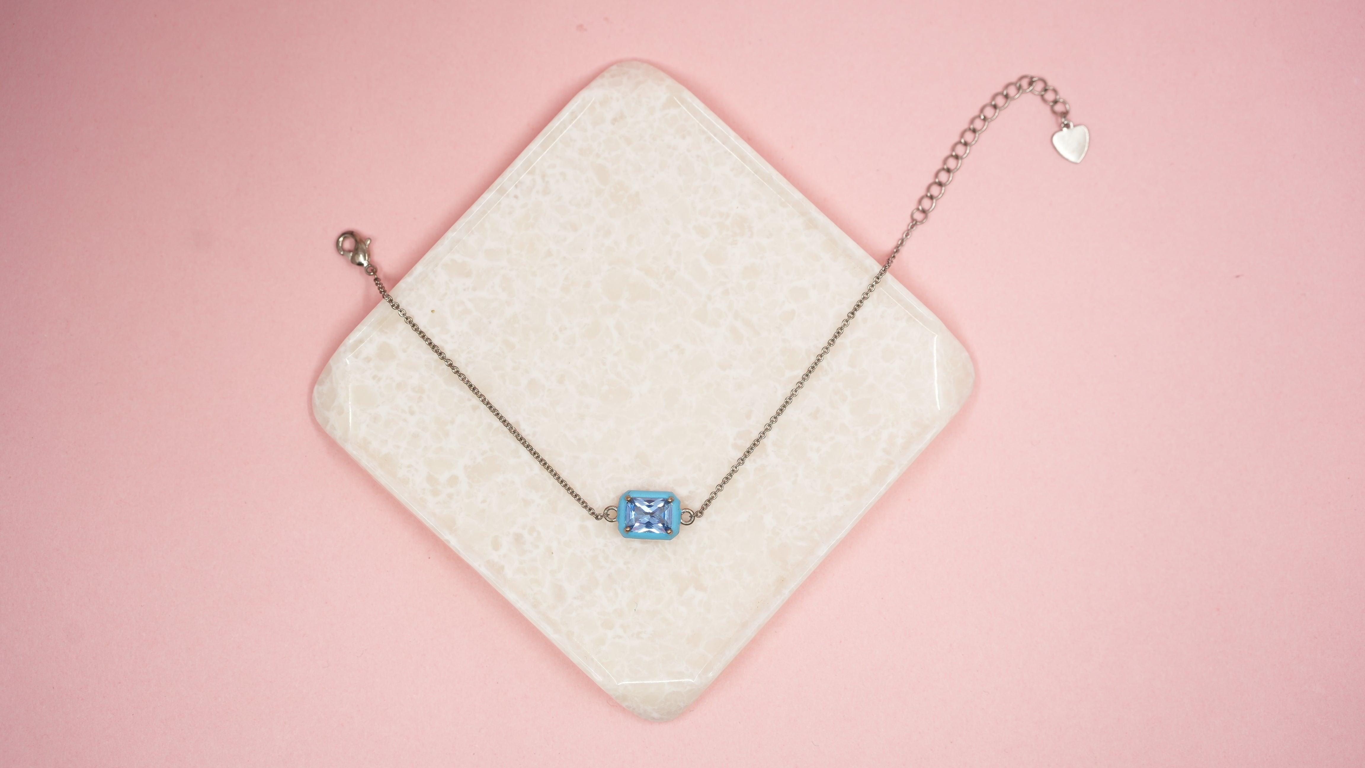 The Azure Bar is a sleek and modern design, featuring a polished linear form set with rich azure blue stones that evoke the calm and depth of clear skies or ocean waters. The vibrant blue hue symbolizes tranquility, wisdom, and clarity, making it both eye-catching and meaningful. Whether accented with silver, gold, or white stones for contrast, the Azure Bar brings a refreshing pop of color and a sense of serenity to any jewelry collection—perfect for stacking, layering, or wearing solo as a statement of calm elegance.