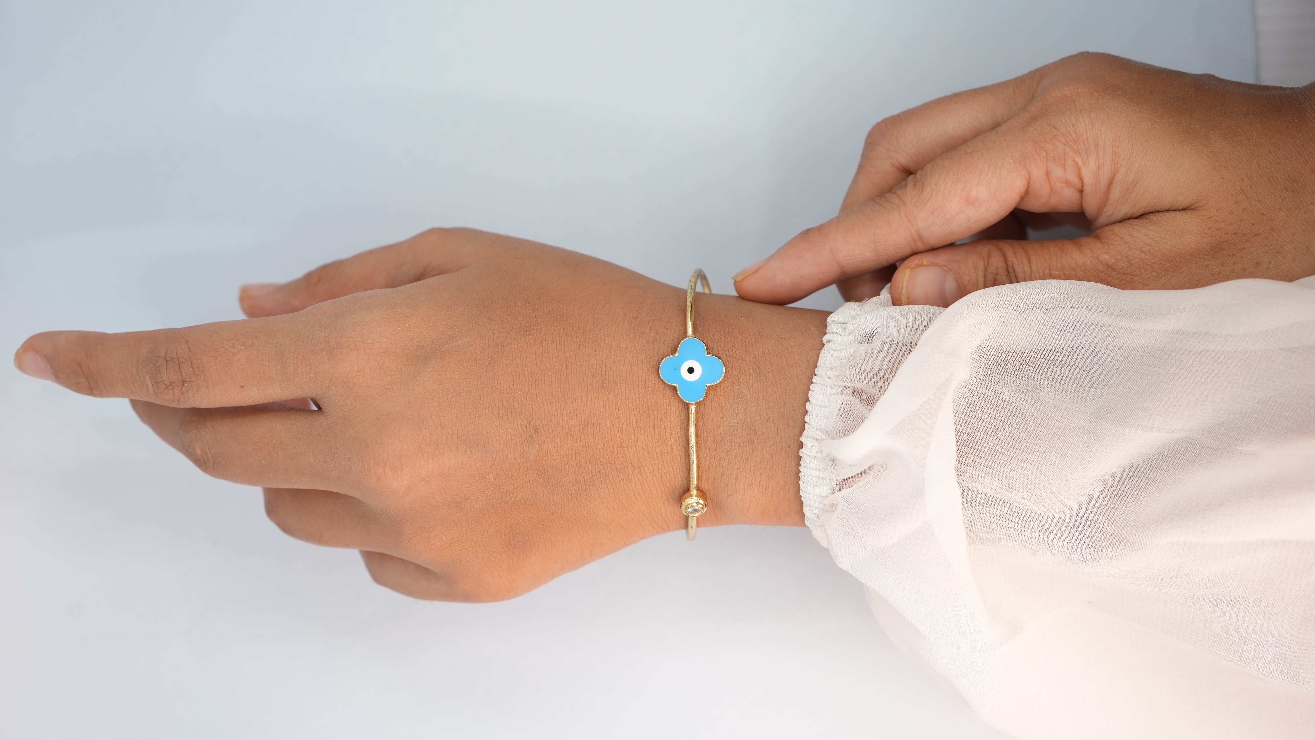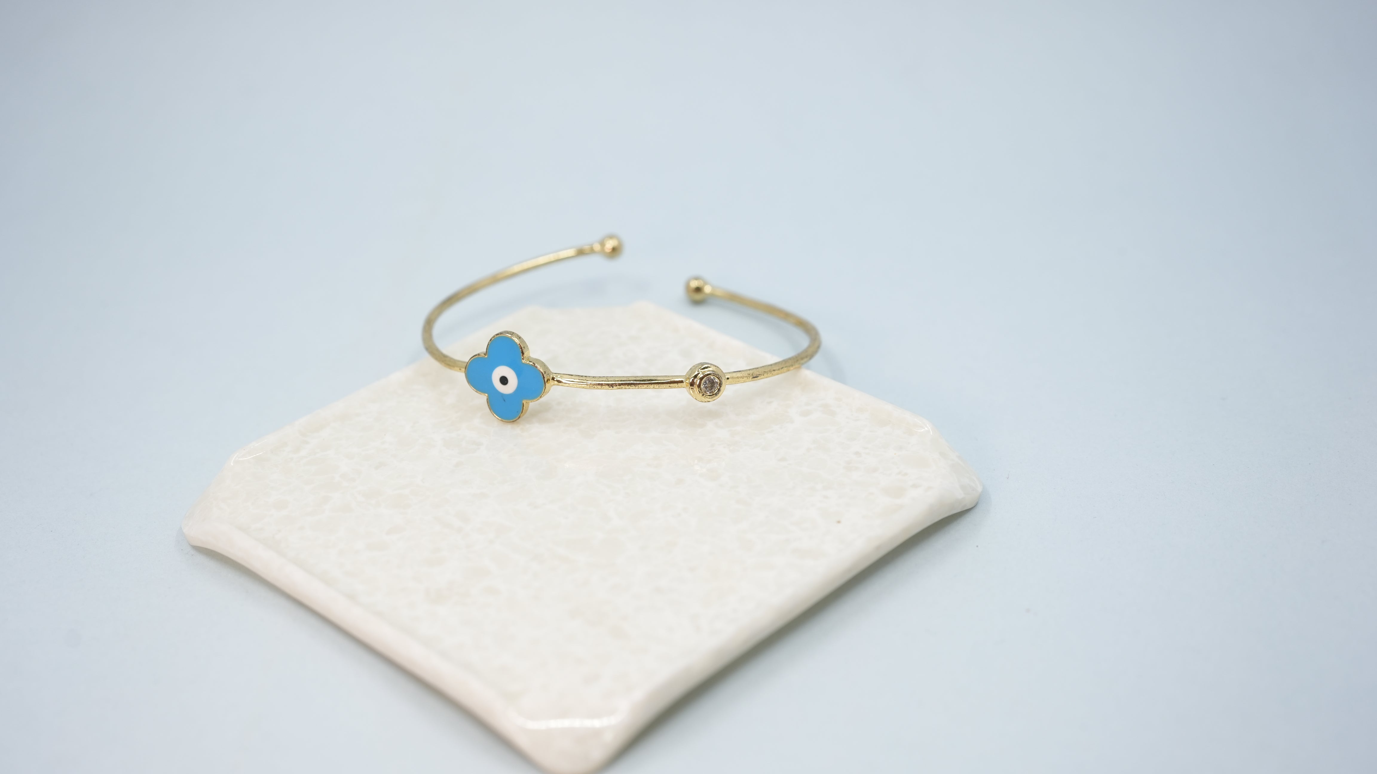 "Add a touch of charm and elegance to your wrist with our Blue Clover Cuff Bracelet. Crafted from high-quality, anti-tarnish stainless steel, this open cuff features a delicate clover motif in a striking blue enamel finish. Symbolizing luck and positivity, the clover design brings a playful yet sophisticated accent to any outfit. Lightweight, adjustable, and perfect for stacking or wearing solo — a timeless piece for everyday glam."