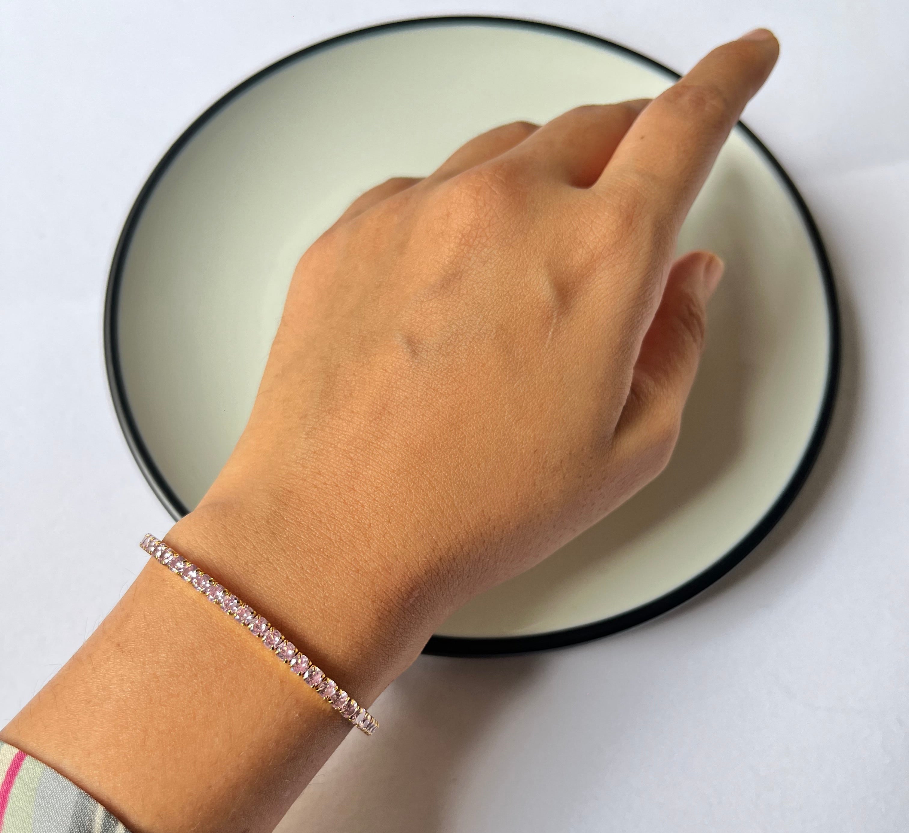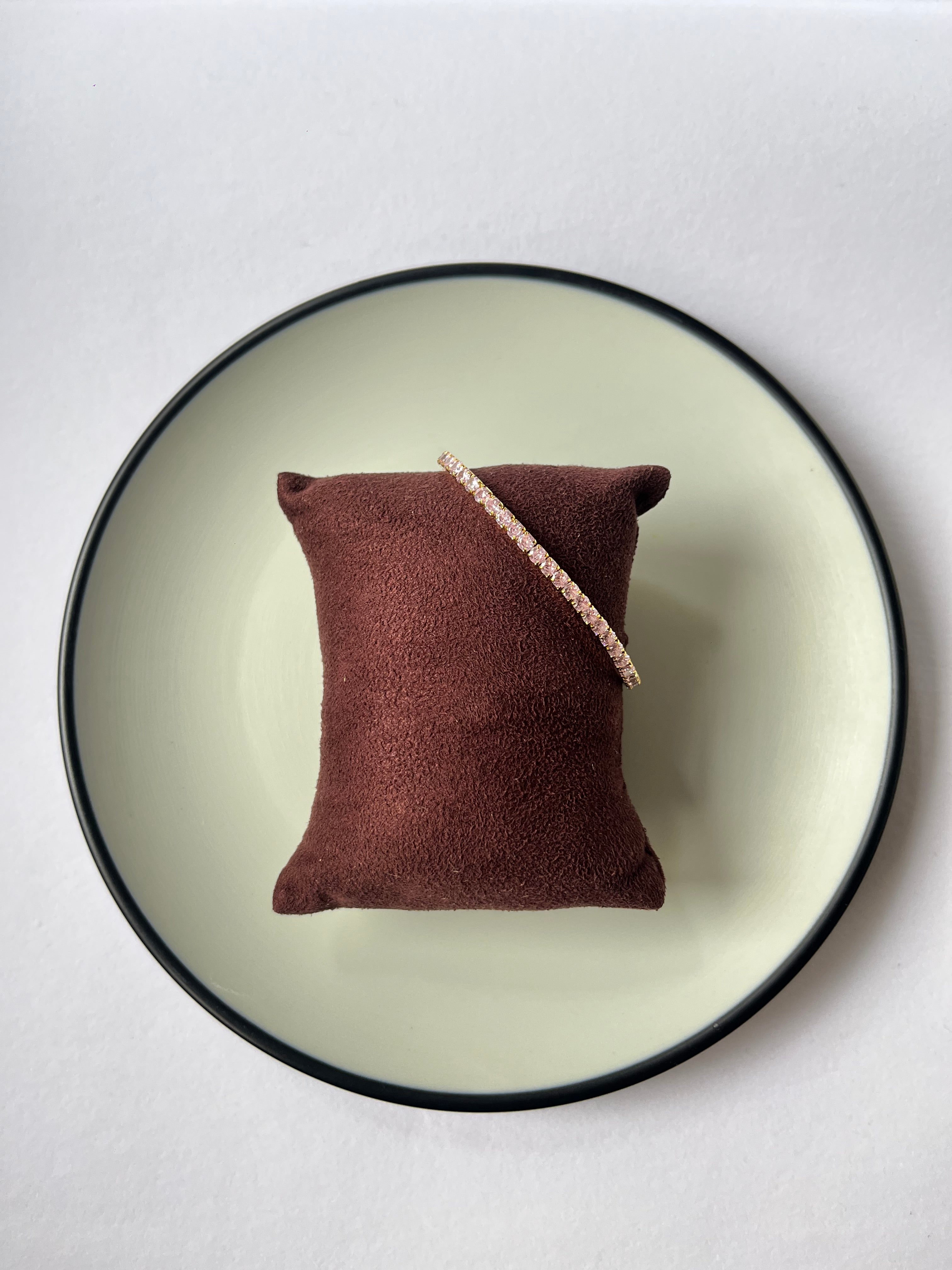Soft as a spring sunrise, the Blush Bloom Studded Bracelet radiates feminine charm and quiet strength. Adorned with blush-toned stones that glisten like dewdrops on petals, this bracelet captures the essence of delicate beauty in full bloom. Whether worn alone or layered, it's a subtle yet striking piece that adds a touch of romance to your everyday elegance.