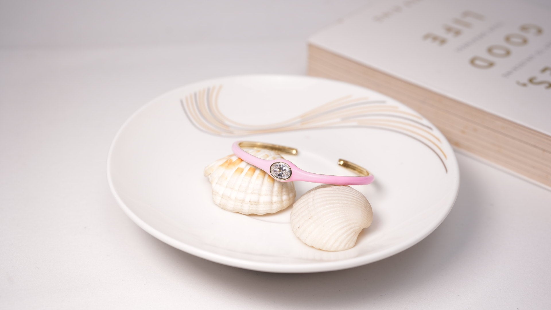 Soft and romantic, this bracelet is adorned with delicate blush-toned crystals that glisten with gentle elegance. Set in a graceful finish, its subtle shimmer adds a touch of femininity—perfect for both everyday charm and special moments.