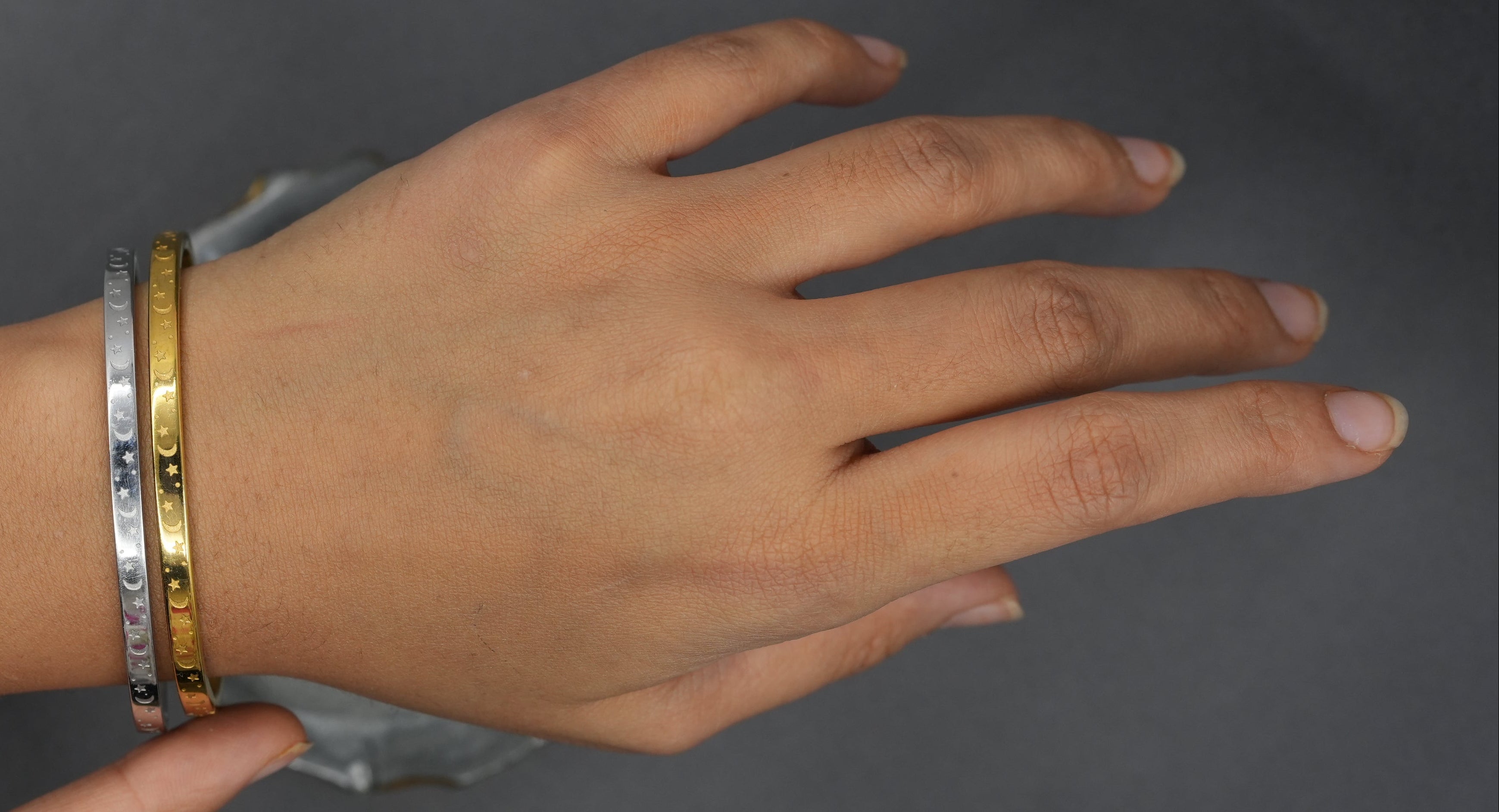 The Celestial Charm Gold Bracelet is a tribute to stardust dreams and sky-bound wonder. Crafted from high-quality gold-tone alloy (non-plated), it features delicate celestial motifs—think stars, moons, or sunbursts—designed to shimmer with every movement. Its lightweight build and radiant finish make it a go-to accessory for adding magic to your everyday style.