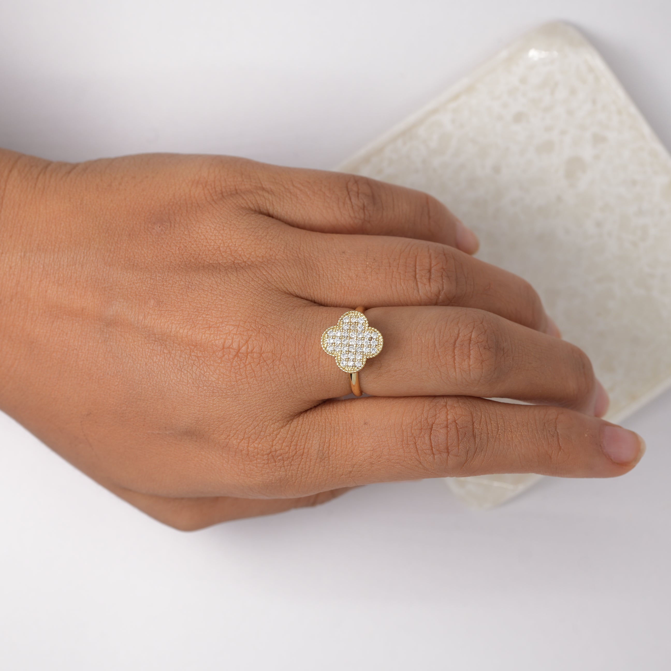 Bring a little golden luck into your life with our Clover Gold Ring. Beautifully crafted in radiant gold, this elegant piece features a delicate four-leaf clover — a classic symbol of hope, love, and good fortune. Its smooth, polished finish and graceful design make it perfect for stacking or wearing solo for a refined, timeless look. Lightweight yet sturdy, this ring is a meaningful gift and a stunning everyday accessory you'll treasure forever.