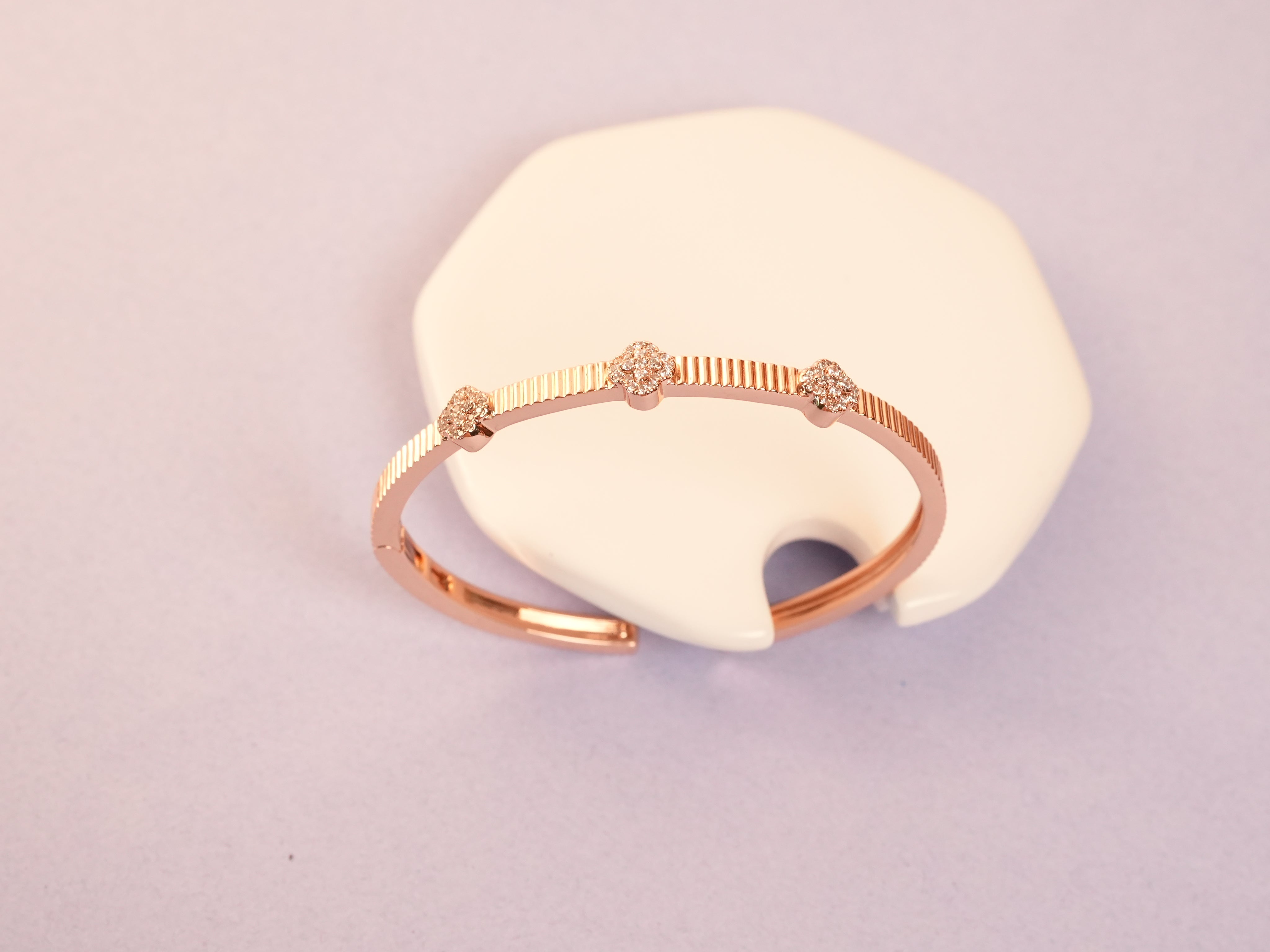 Bring a touch of charm and elegance to your style with the Clover Loop Bracelet. Designed with a graceful looped pattern and accented with a delicate clover motif, this piece symbolizes luck and timeless beauty. Its sleek finish makes it versatile for everyday wear while adding a hint of sophistication to any outfit.
