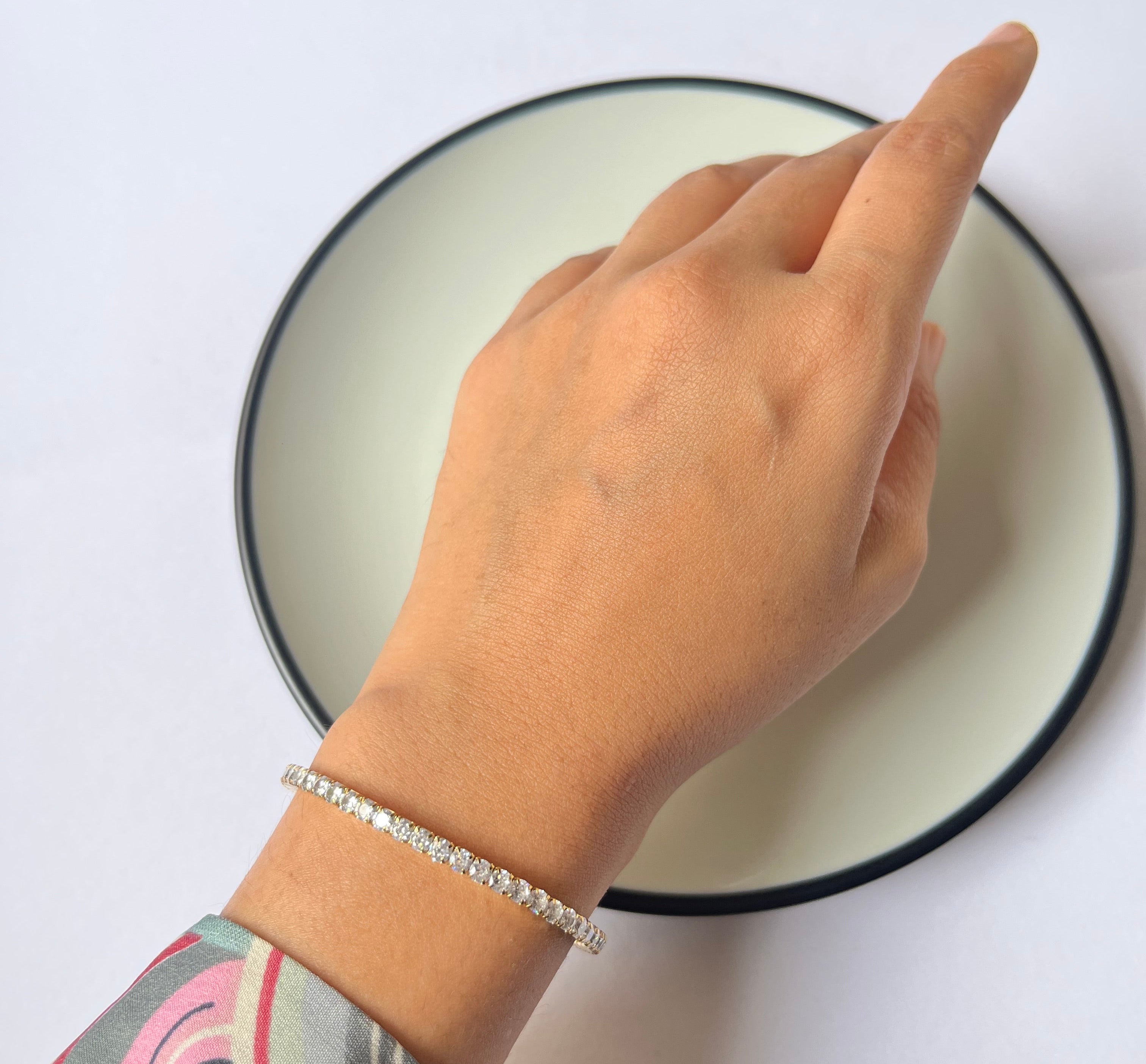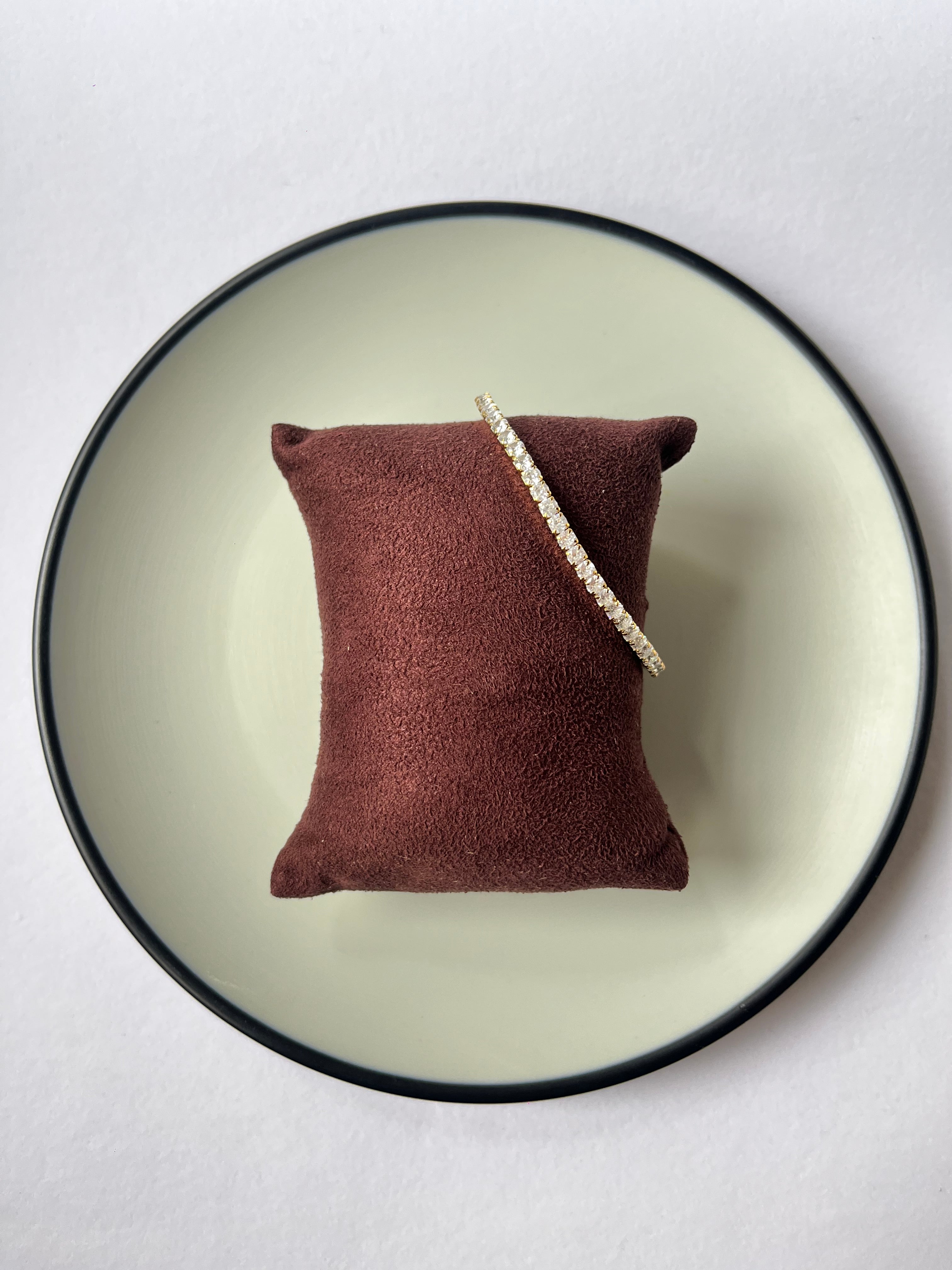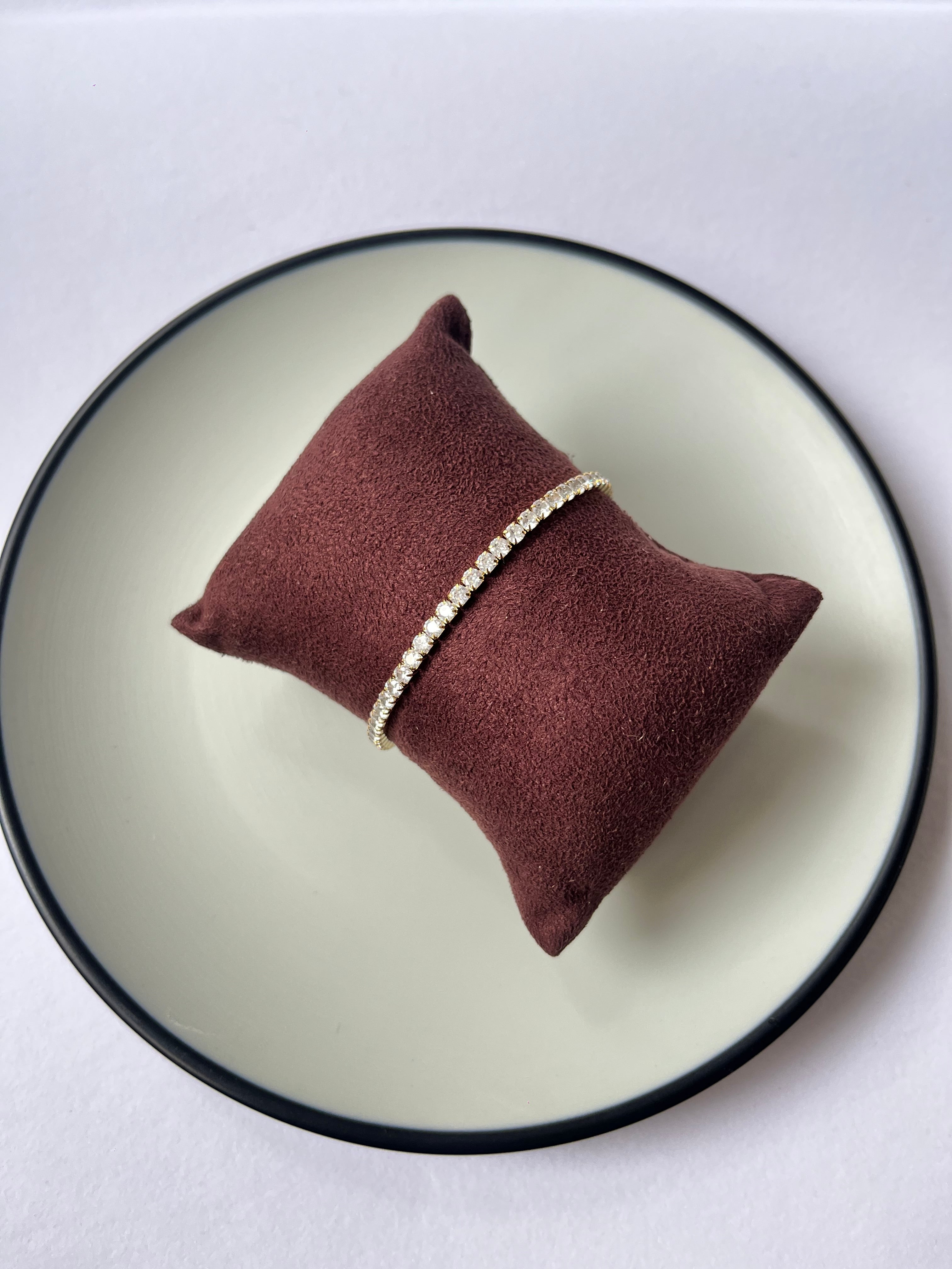 Inspired by light, crafted for allure — the Crystal Muse Golden Studded Bracelet is a radiant blend of golden warmth and crystal clarity. Each shimmering stud catches the light like a muse catching inspiration, making this piece a timeless symbol of inner glow and graceful strength. Wear it to shine effortlessly, day or night.
