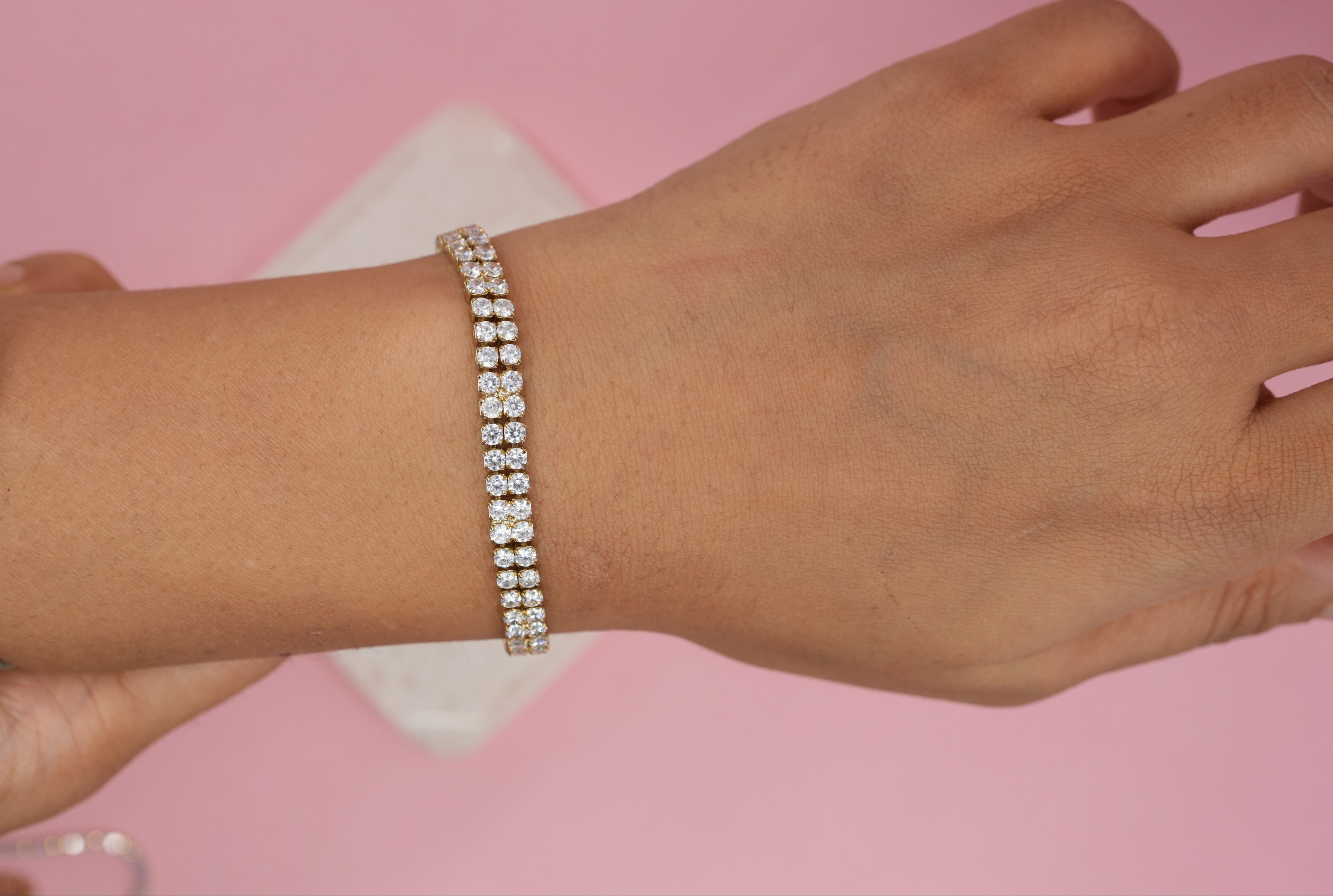 *“With a beautifully balanced design, Double Dazzle features two rows of meticulously placed stones for a layered shimmer.