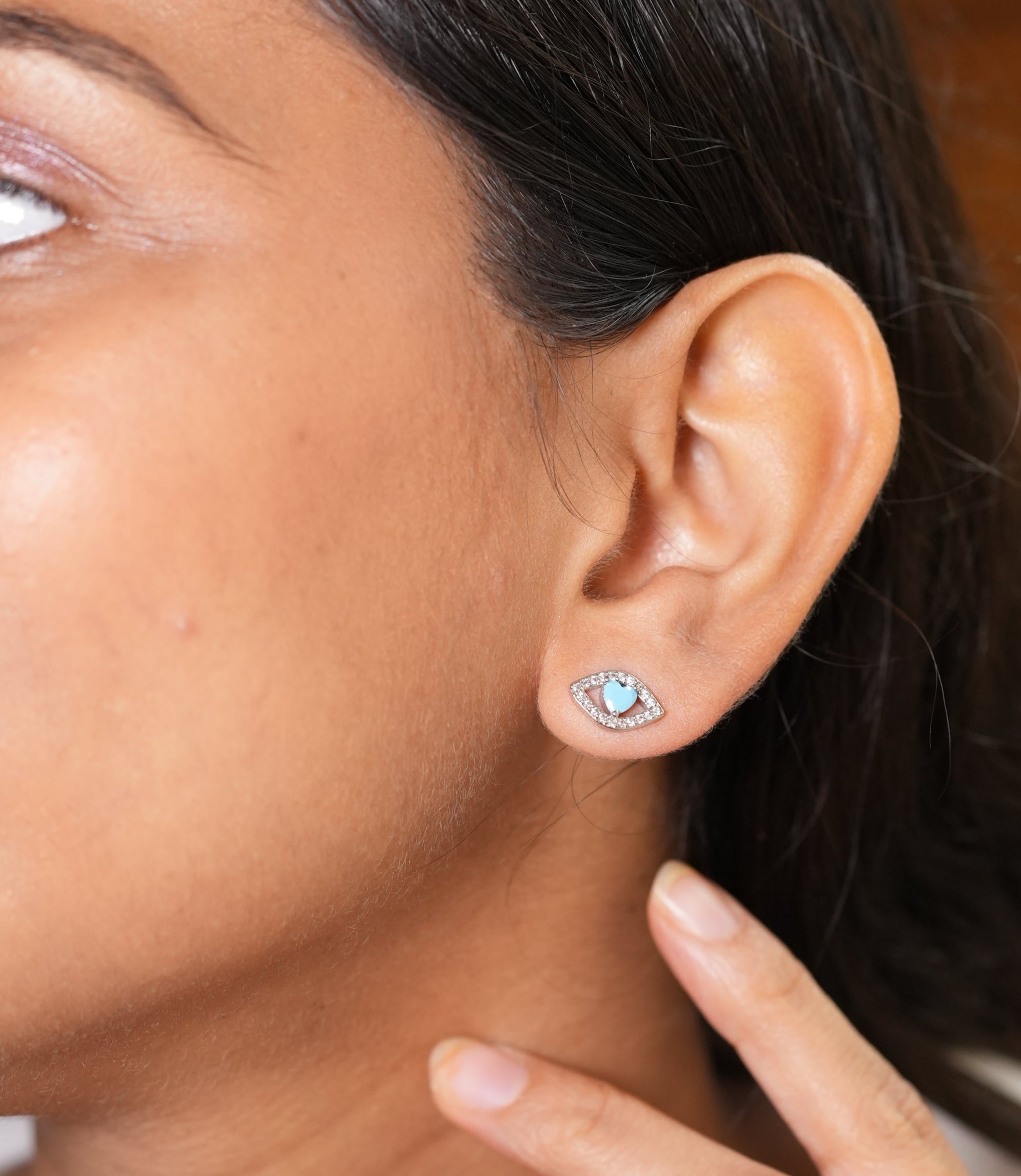 The evil eye in silver presents a timeless protective symbol rendered in cool, polished silver, often paired with accents in blue, white, or black enamel or stones.