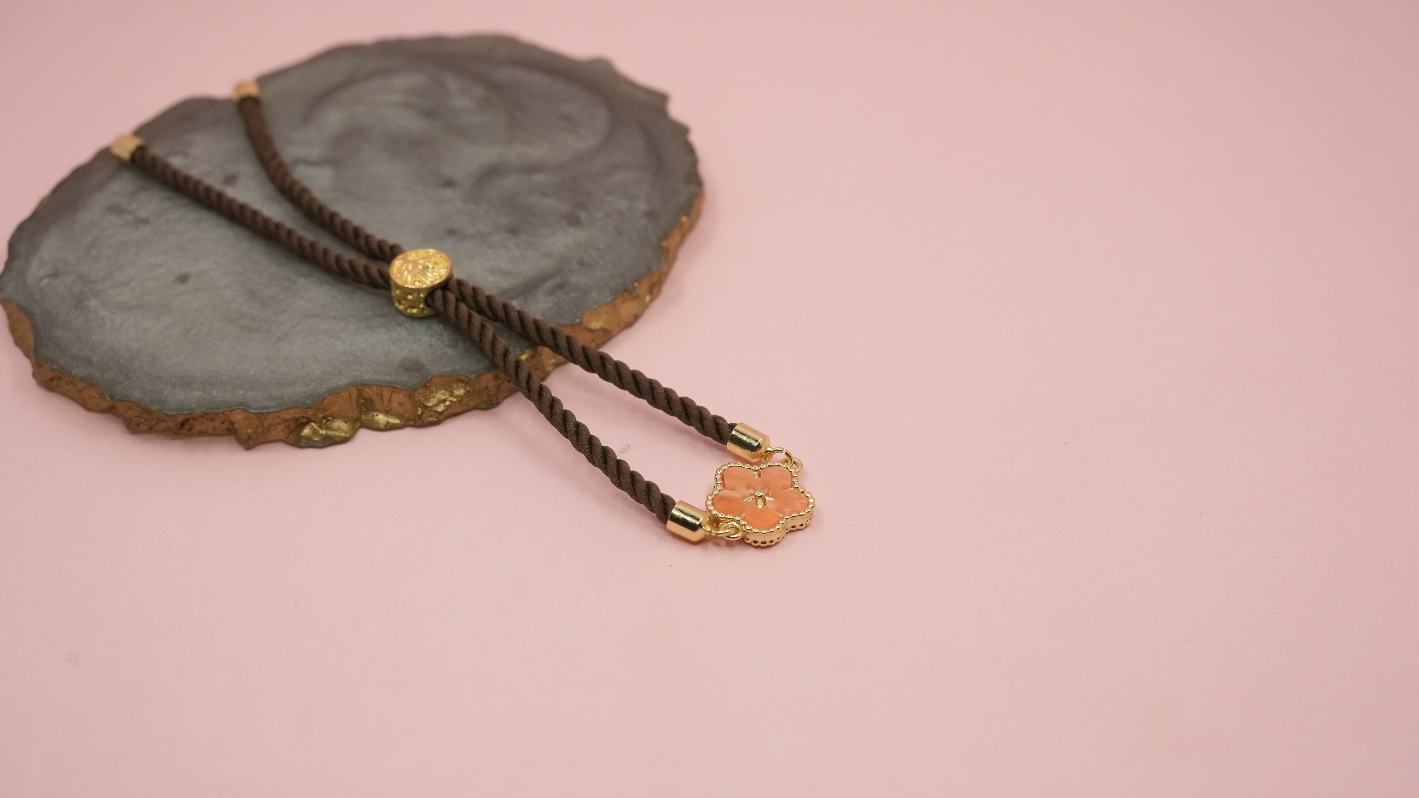 Delicate, stylish, and effortlessly versatile — the Floral brown Cord Bracelet brings subtle charm to your everyday look. Featuring a soft grey adjustable cord and a finely detailed floral charm, this bracelet blends minimalism with nature-inspired elegance. Perfect for stacking or wearing solo, it’s a graceful accessory that complements any outfit from casual to chic.