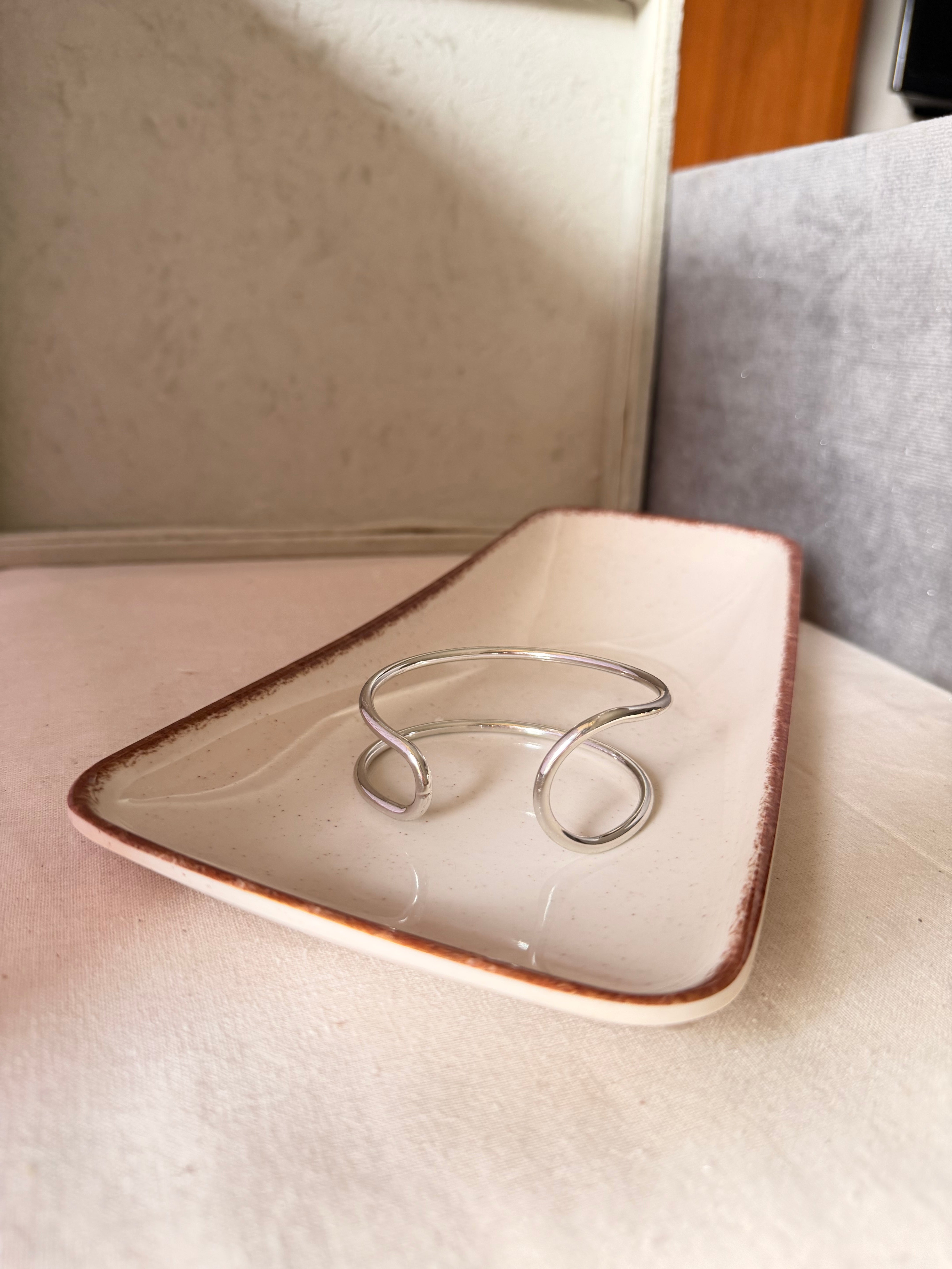 Sleek and sculptural, the Hollow Silver Flow Cuff is a modern interpretation of fluid elegance. Designed with a hollow, openwork form, this cuff features smooth, flowing curves that wrap gracefully around the wrist, creating a light and airy silhouette. The luminous silver finish enhances its contemporary appeal, reflecting light with subtle sophistication. Crafted in an open cuff style for effortless wear and a comfortable fit, it feels feather-light while making a refined statement. Perfect for everyday styling or elevated occasions, this cuff pairs beautifully with minimal outfits, tailored looks, and modern ensembles, adding a touch of fluid charm and timeless elegance to your jewelry collection.