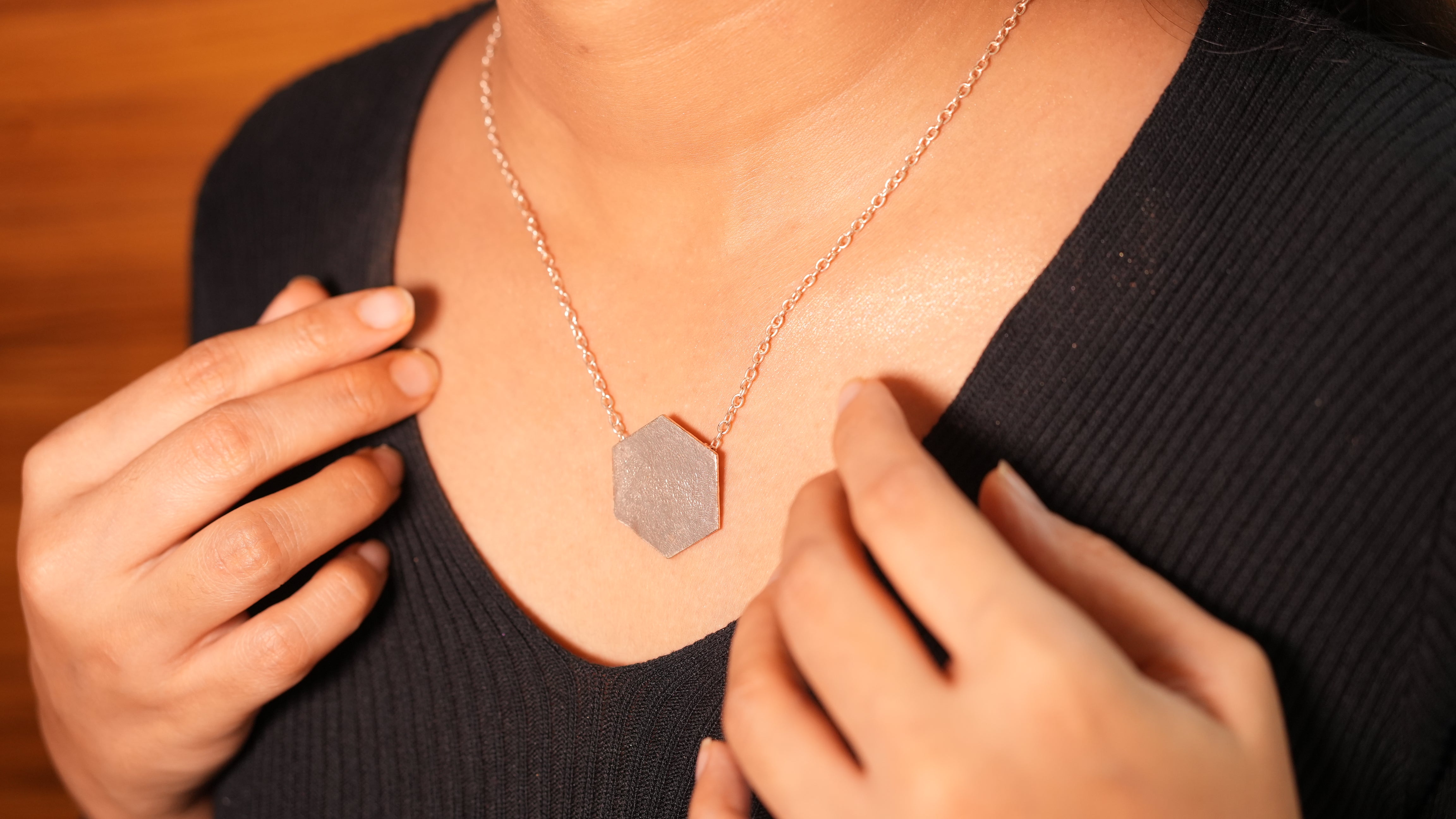 Modern elegance meets geometric precision in this striking hexagon pendant, crafted in smooth, flat rose gold. Symbolizing harmony and balance, the six-sided shape adds a contemporary touch to your jewelry collection. Lightweight and versatile, it’s the perfect piece for effortless everyday wear or stylish layering.