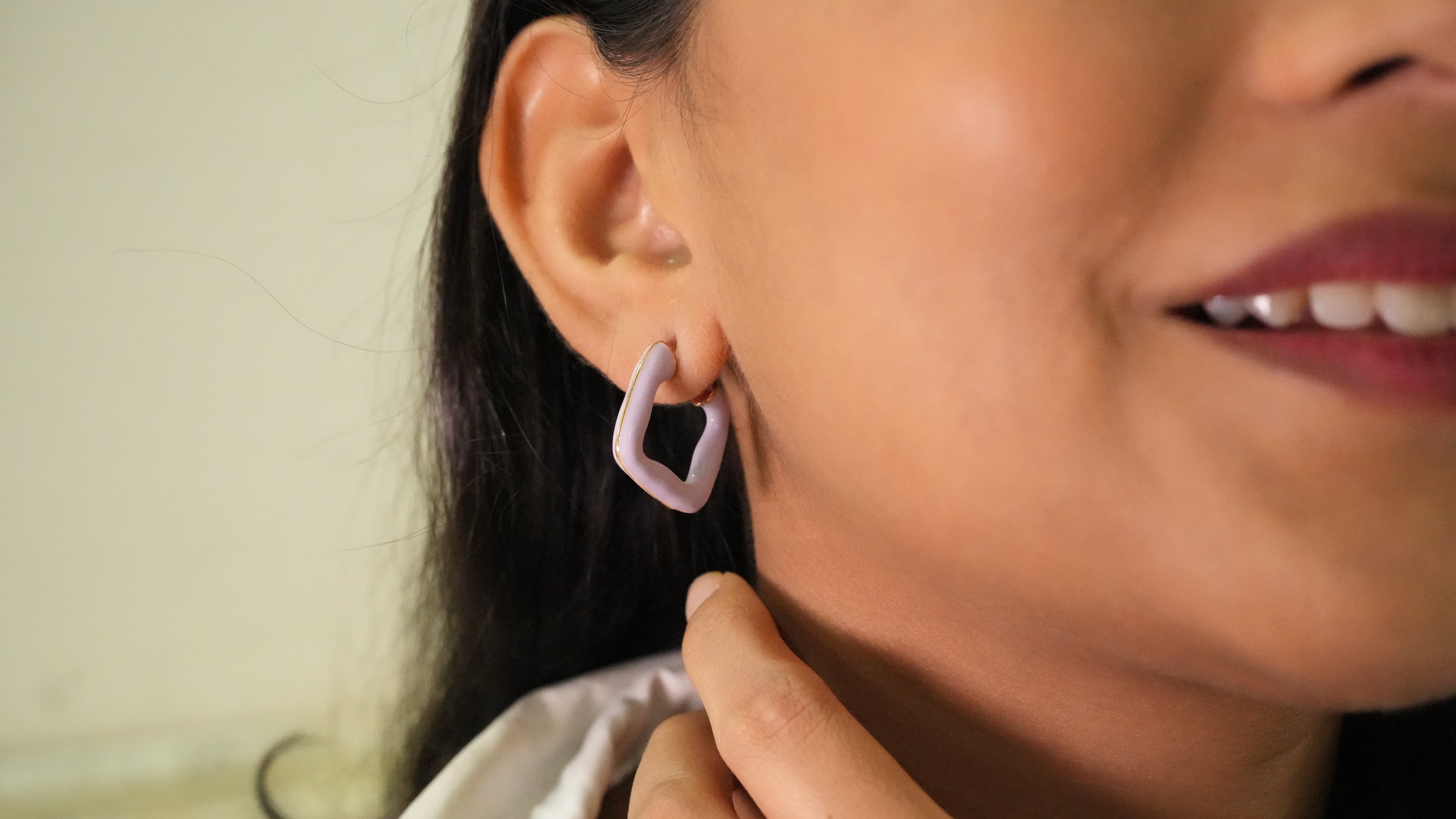 Make a subtle statement with the Lilac Edge Earrings—where soft color meets sharp design. Featuring clean lines and a smooth lilac enamel finish, these earrings balance minimalism with a hint of playful elegance. Perfect for everyday wear or adding a gentle pop of color to elevated looks, they bring just the right amount of edge to your style.