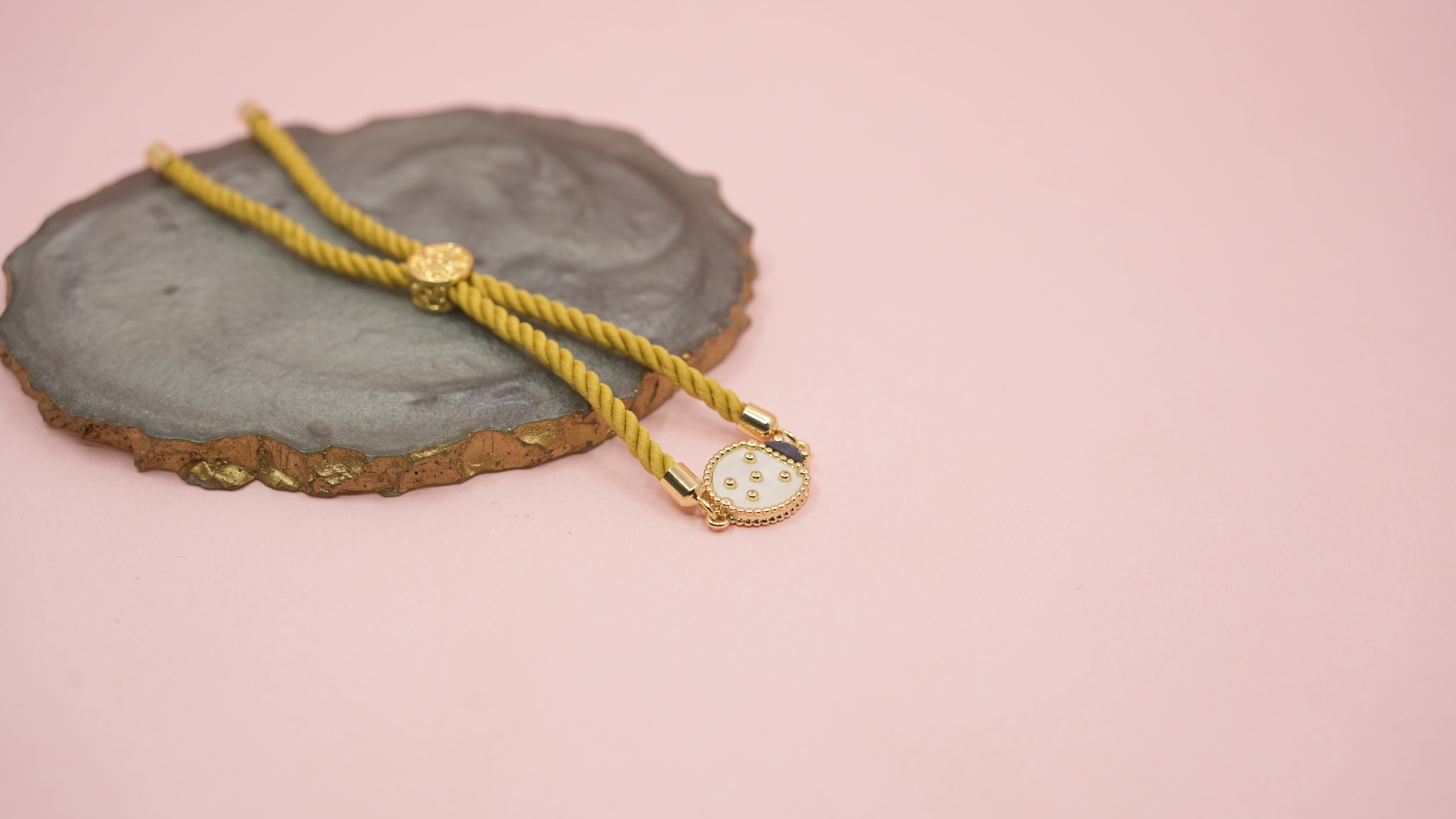 Vibrant and full of character, the Mustard Yellow Bee Chord Bracelet stands out with its bold hue and meaningful charm. The sunny mustard yellow cord is paired with a delicate bee charm—symbolizing energy, community, and creativity. Finished with an adjustable sliding knot, it’s a playful yet purposeful accessory for any wrist and any day.
