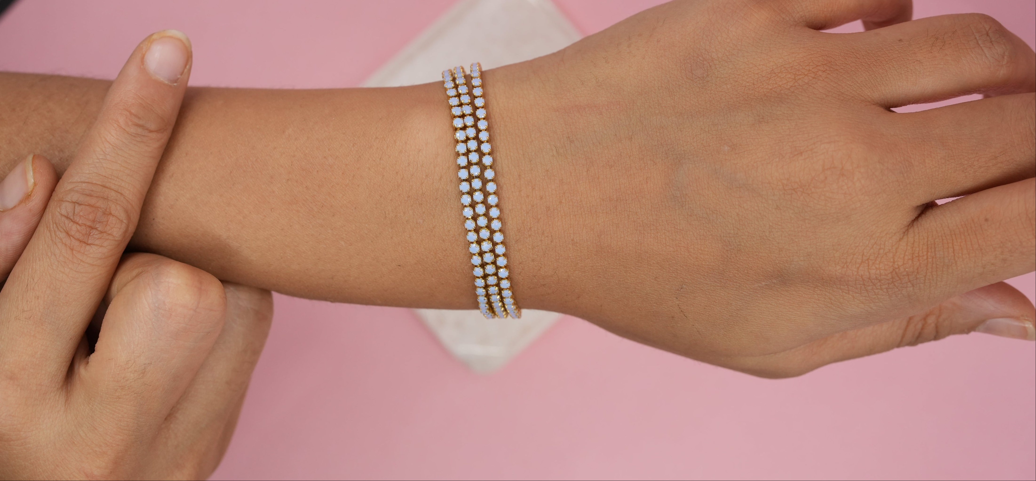 The Opal Elegance Bracelet captures the magic of moonlit shimmer in a delicate design. Crafted from high-quality alloy (artificial, non-plated), it features luminous opal-toned stones that shift with the light—set in a refined, minimal frame. Ethereal yet grounded, this bracelet adds a touch of calm sophistication to any look.