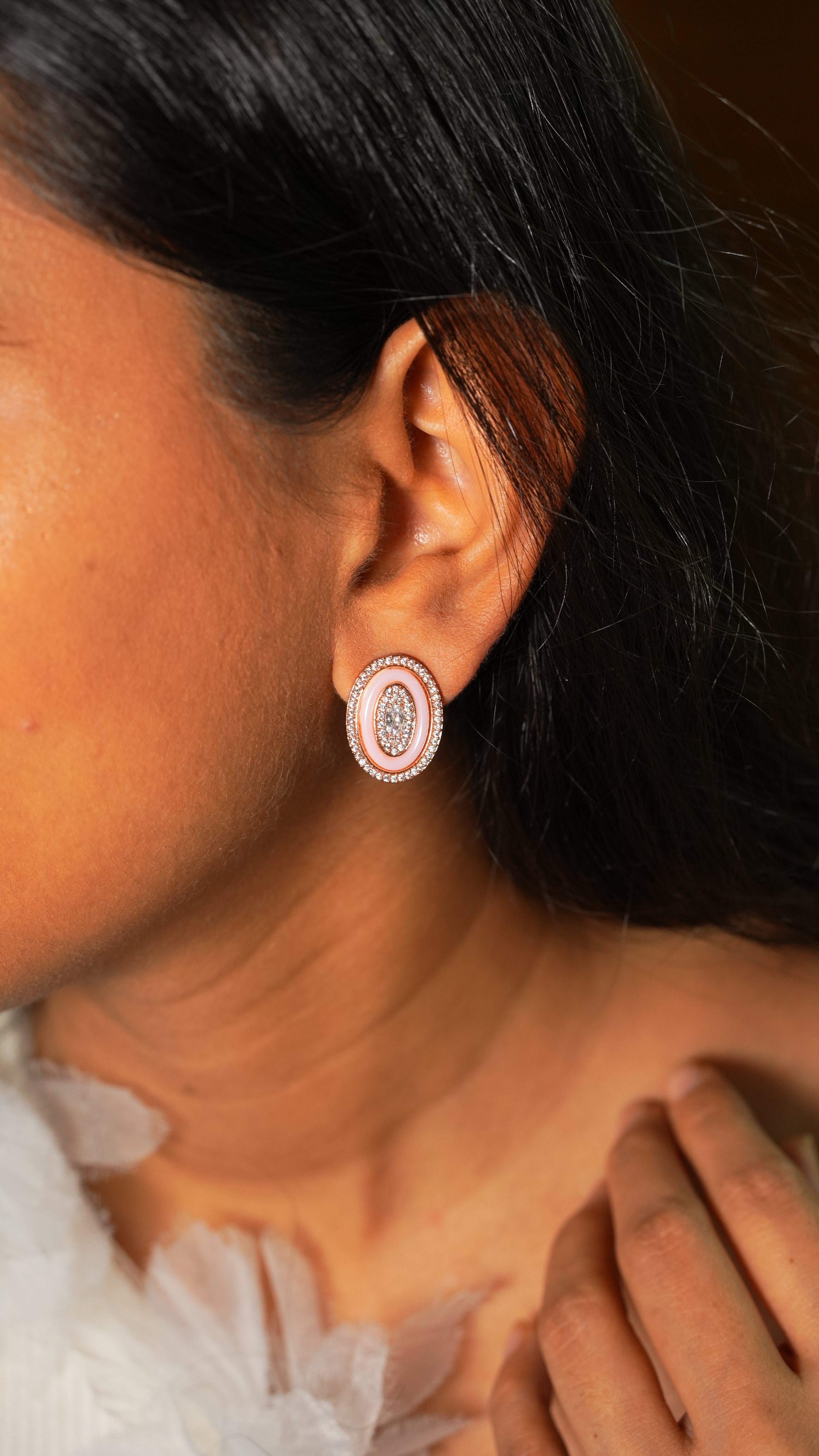 Soft and refined, the Pink Oval earrings feature a smooth oval silhouette in a gentle blush hue. Their minimal design and warm color make them a versatile piece—perfect for adding a touch of subtle charm to both everyday and special looks.