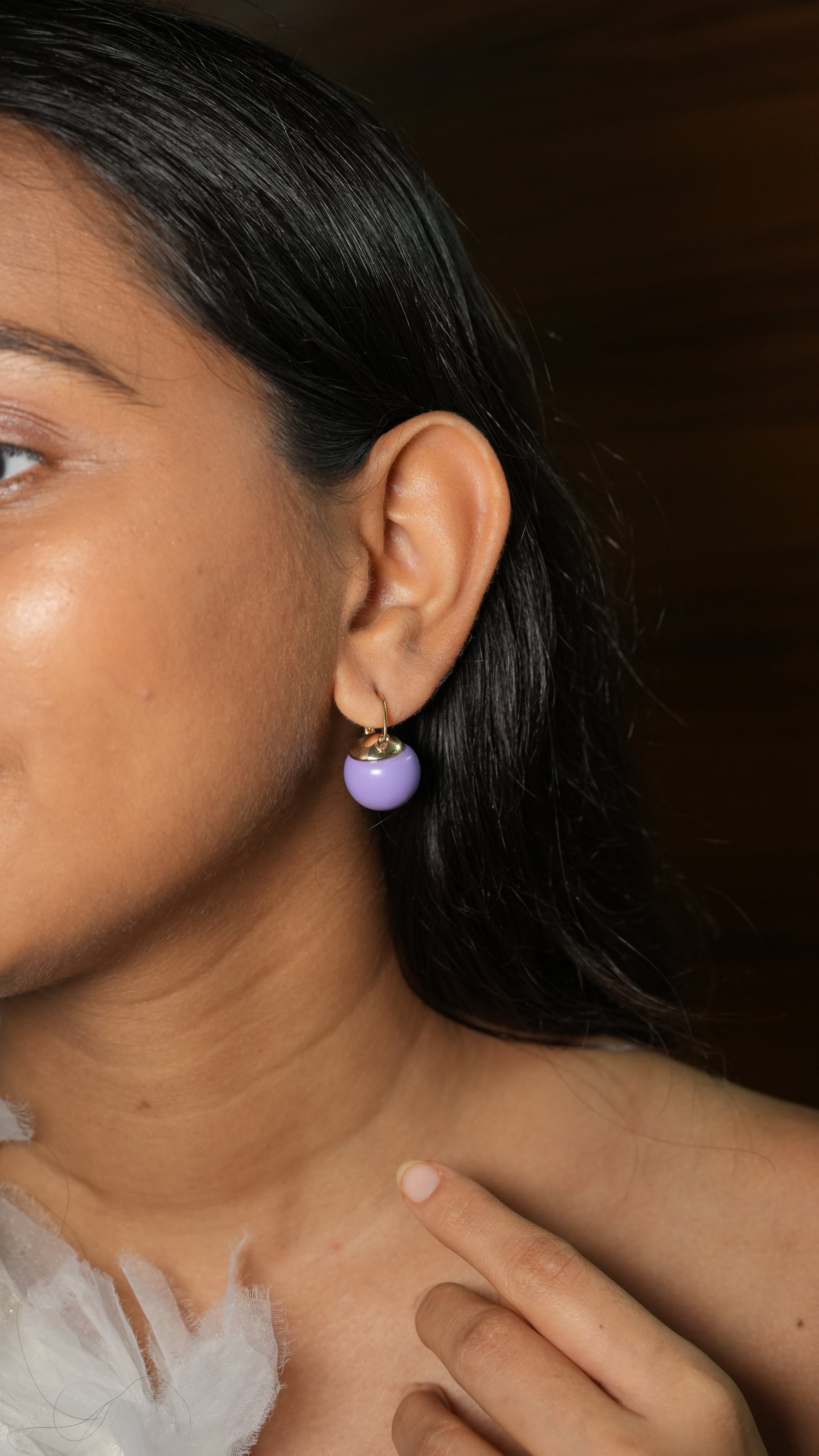 Add a touch of elegance with the Purple Globe Earrings—designed with smooth, spherical forms in a rich, glossy purple finish. Their minimalist shape offers timeless appeal, while the bold color brings a modern edge. Lightweight and effortlessly stylish, these earrings are perfect for making a subtle yet striking statement.