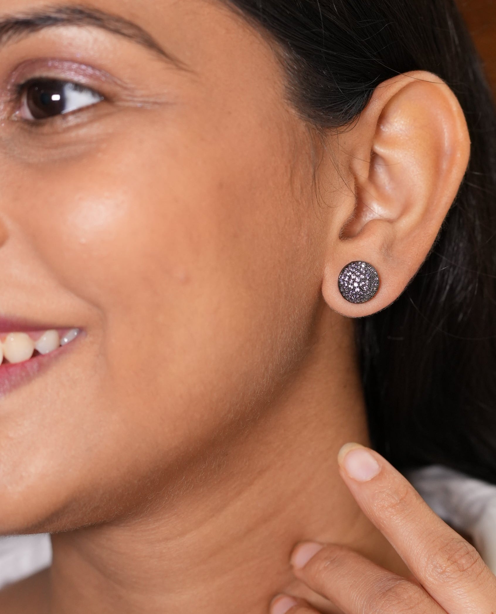 The deep purple hue evokes a sense of royalty, mystery, and creativity, while the pave setting adds glamour and dimension.