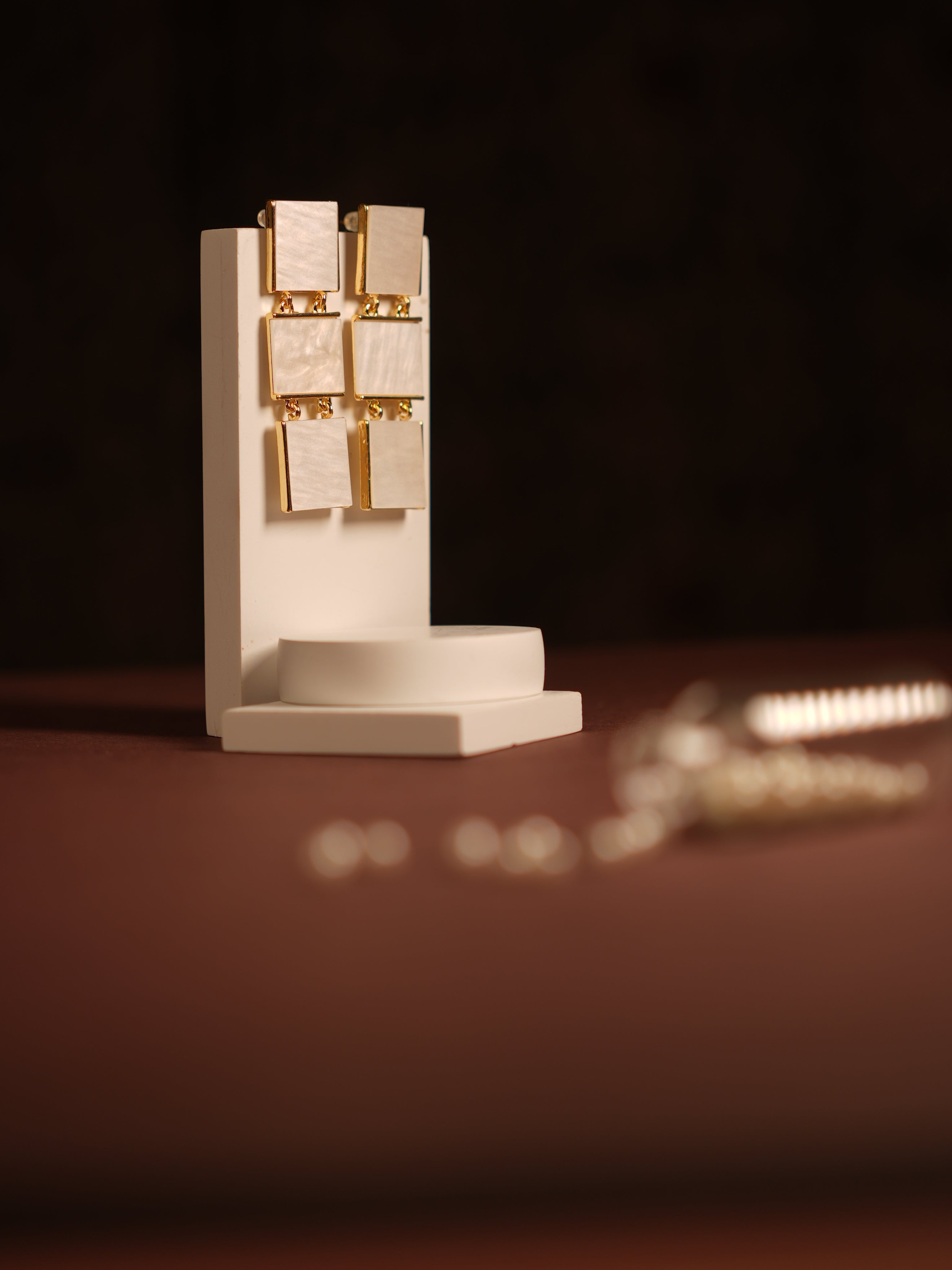 Bold and architectural, the Squares Cascade features a flowing arrangement of geometric squares, artfully layered in a vertical drop. Each square shifts slightly in size or tone, creating a sense of rhythmic movement and visual depth. Whether in high-polish metal, two-tone contrast, or soft matte finish, this design adds a striking edge to contemporary styling—perfect for those who love clean lines with a statement twist