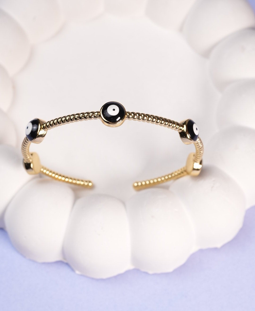 A bold symbol of protection and style, the Triple Evil Eye Black features three striking evil eye motifs aligned in perfect harmony. Set against a sleek black finish, this piece embodies strength, mystery, and modern elegance. The triple design amplifies its protective charm while making a strong fashion statement.