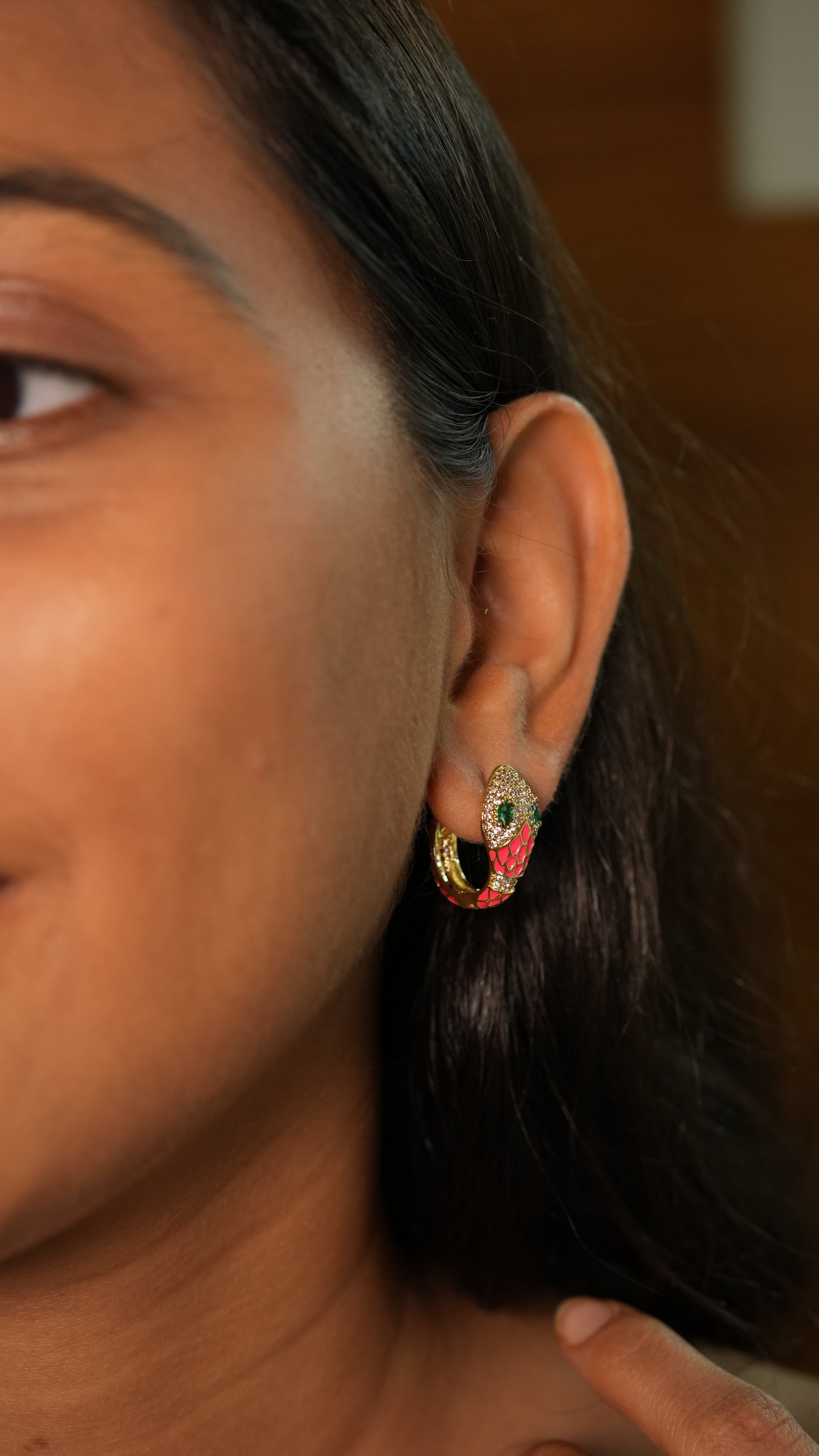 Striking and fearless, the Venom Charm Hoops are designed to captivate. Featuring sleek metallic hoops adorned with serpent-inspired accents or dark-toned charms, they exude a mysterious allure. With a blend of danger and elegance, these hoops are perfect for those who own their power and wear their edge with style.