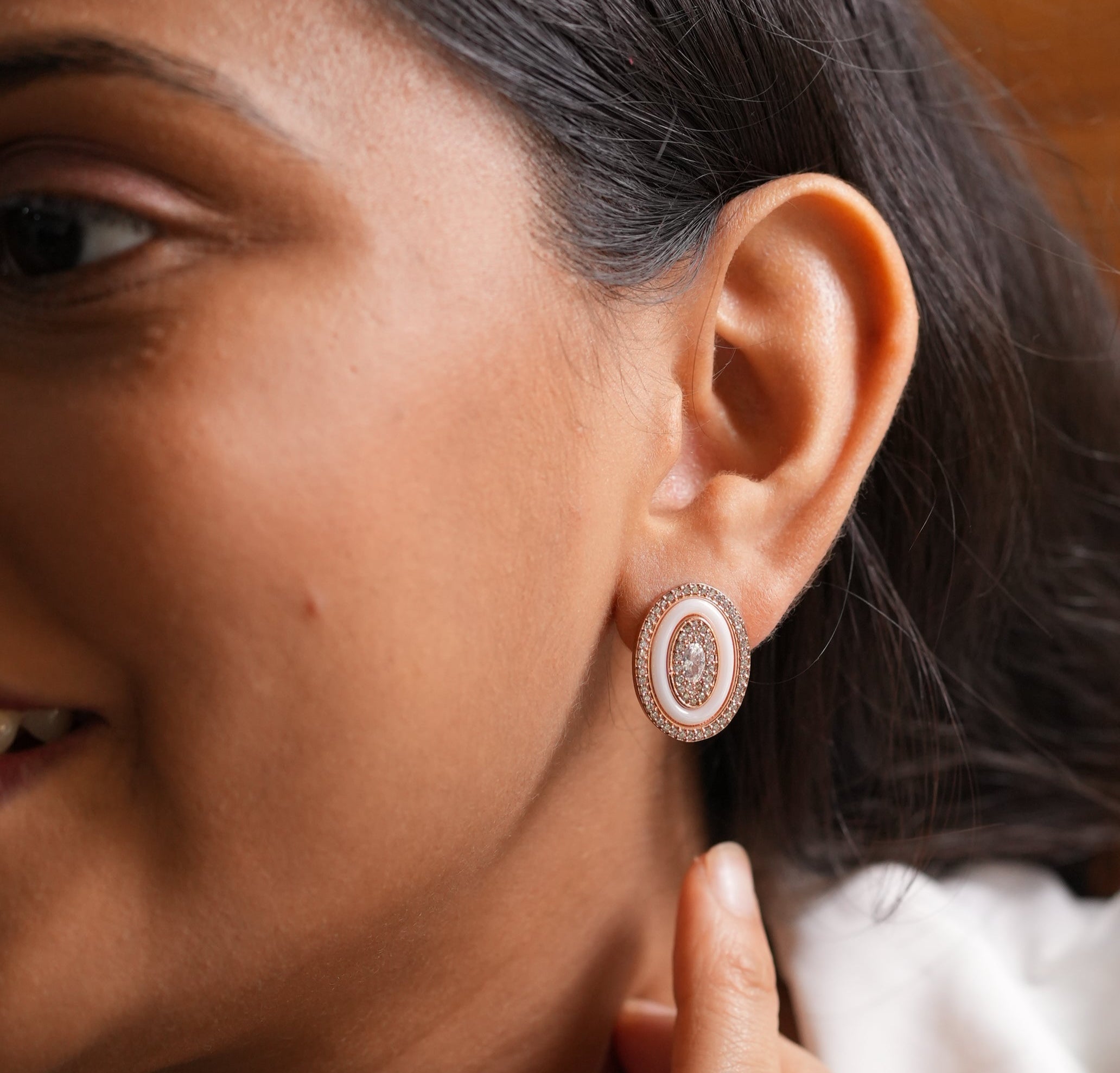 A white oval features a smooth, elongated circular shape with softly rounded edges, symbolizing balance and continuity.